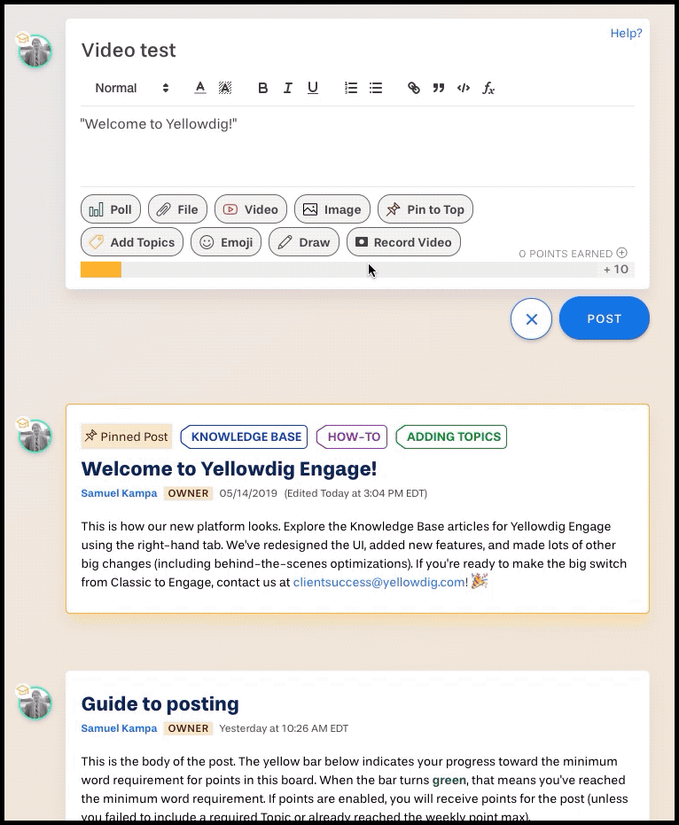 Bringing in big questions that surface on the Yellowdig help forum to class can help reassure students that their questions are being answered comprehensively.