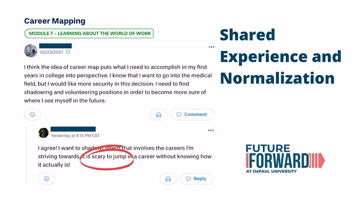 Again, this program is centered around career building, but also community building, and it is not credit-bearing. The DePaul faculty realized that the course had to be fun, and Yellowdig helps that by giving students a space to easily be authentic and organic with their cohort.