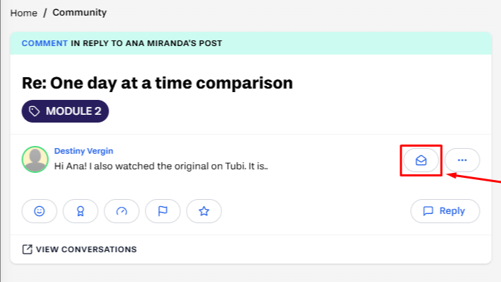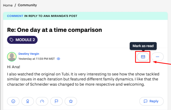 To manually mark a post as “Read” or “Unread,” click the Envelope icon located in the top-right corner of the post.